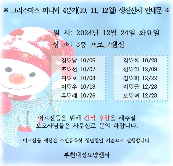 4분기 생신잔치 및 크리스마스 파티 개최 안내문